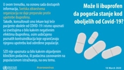 Mi ponavljamo da trenutno ne postoji nijedan efikasan lijek protiv COVID-19, radi se na tome. Ali naravno, ljudi će pokušati da spuste temperaturu, da im jednostavno simptomi budu što blaži. Mi trenutno ne preporučujemo neuzimanje bilo kojeg lijeka a tako i ibuprofena. Mi se nadamo da će biti više istraživanja koja će nam dati više informacija.