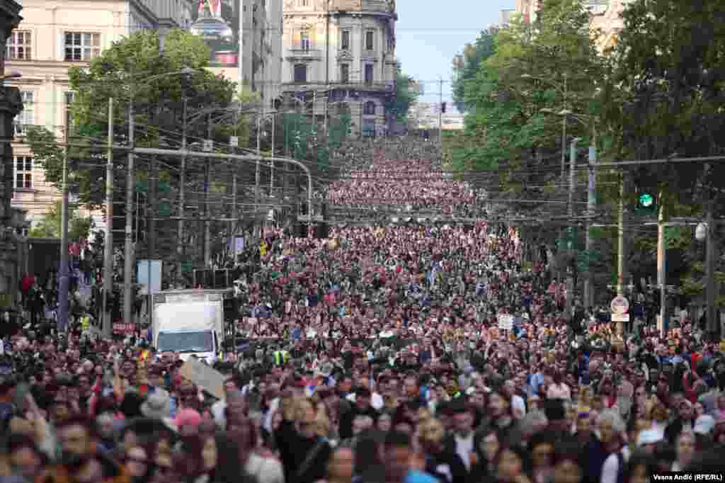 Nekoliko desetina hiljada ljudi okupilo se na trećem protestu "Srbija protiv nasilja" u Beogradu, 19. maja.