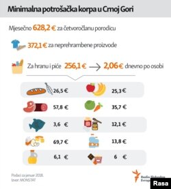 Za dnevnu ishranu jedne osobe u Crnoj Gori je, prema državnom Zavodu za statistiku, dovoljno dva eura kojima se mogu obezbijediti tri obroka.