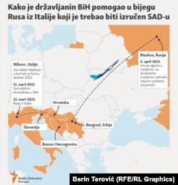 "Za njim je više zemalja raspisalo europski uhidbeni nalog i međunarodnu potragu za kazneno djelo pomaganja i omogućavanja bijega pritvorenika u kućnom pritvoru. Nadležni sud mu je odredio istražni zatvor", ističe se u odgovoru za RSE.