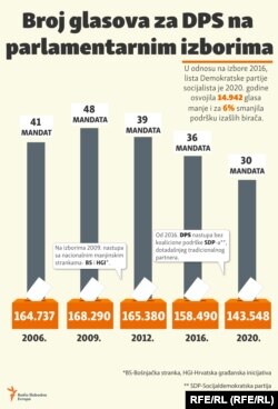 Analiza izbornih rezultata pokazuje da je DPS na ovim izborima minus napravio gubitkom dijela svojih birača u najvećim crnogorskim gradovima Podgorici i Nikšiću. DPS je u glavnom gradu osvojio gotovo 7.000 glasova manje nego 2016. godine, a u Nikšiću 3.500 birača.