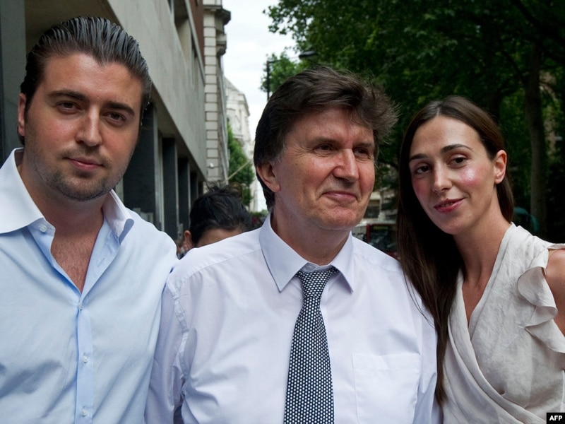 Ejup Ganić sa sinom Emirom i ćerkom Eminom ispred Westminsterskog suda nakon donošenja odluke, 27. jul 2010.